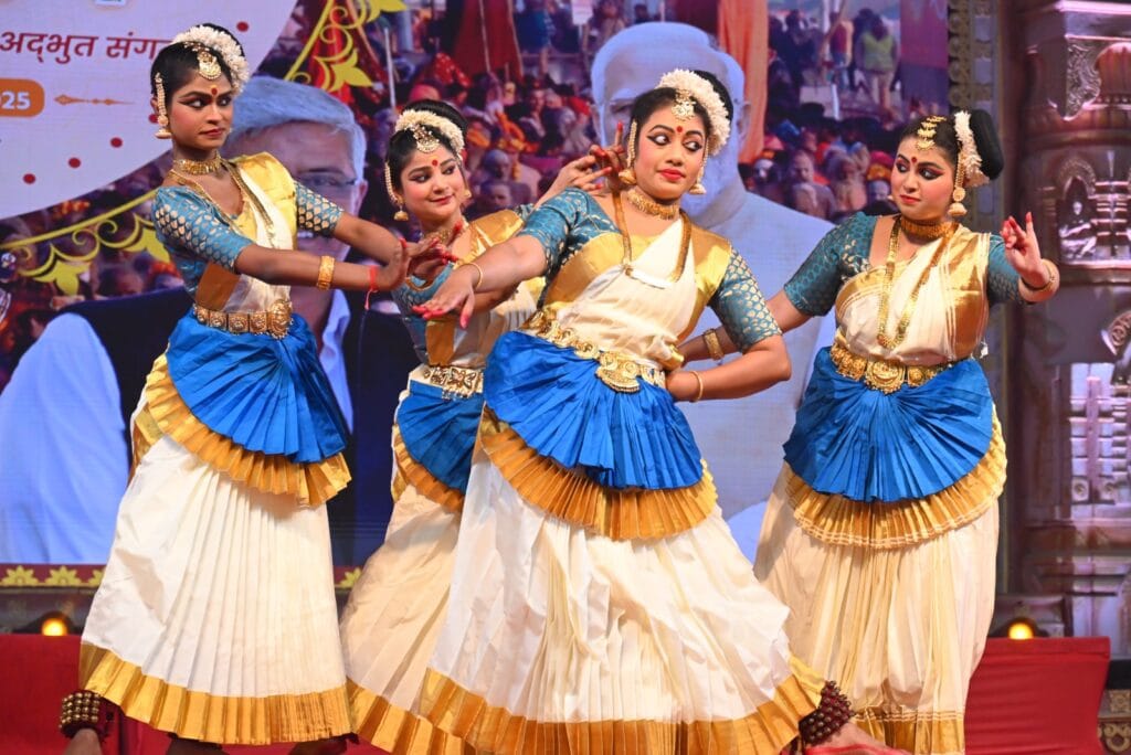 संस्कृति मंत्रालय, भारत सरकार द्वारा महाकुंभ के सांस्कृतिक कार्यक्रमों की श्रृंखला में आयोजित सांस्कृतिक संध्या में सुप्रसिद्ध नृत्यांगना जया प्रभा मेनन और उनके दल की मोहिनीअट्टम प्रस्तुति ने दर्शकों को भाव-विभोर कर दिया। यह प्रस्तुति समुद्र मंथन की पौराणिक कथा पर आधारित थी, जिसमें उन्होंने लास्य प्रधान नृत्य शैलियों के माध्यम से कथानक को जीवंत कर दिया। उनकी भाव-भंगिमाएं, नटराज शिव की आराधना, पंचाक्षर मंत्र की आध्यात्मिक आभा और अष्टमूर्ति रूप की प्रस्तुति ने दर्शकों को मोहित कर दिया।