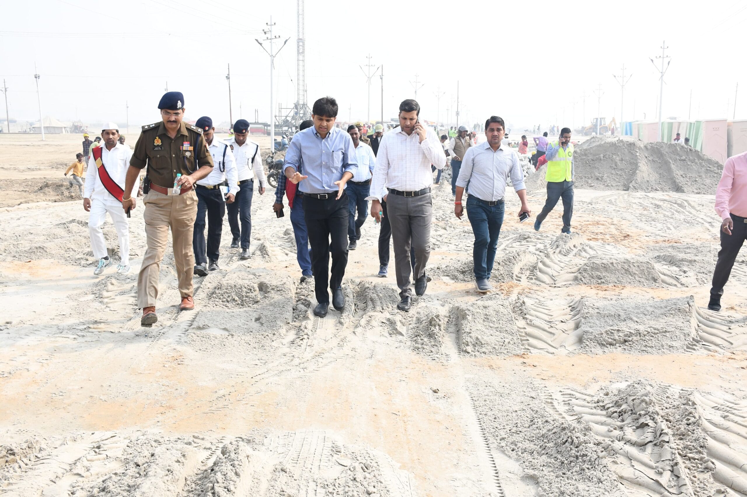 कुम्भ मेलाधिकारी व जिलाधिकारी ने महाकुंभ-2025 निर्माण कार्यों का किया निरीक्षण